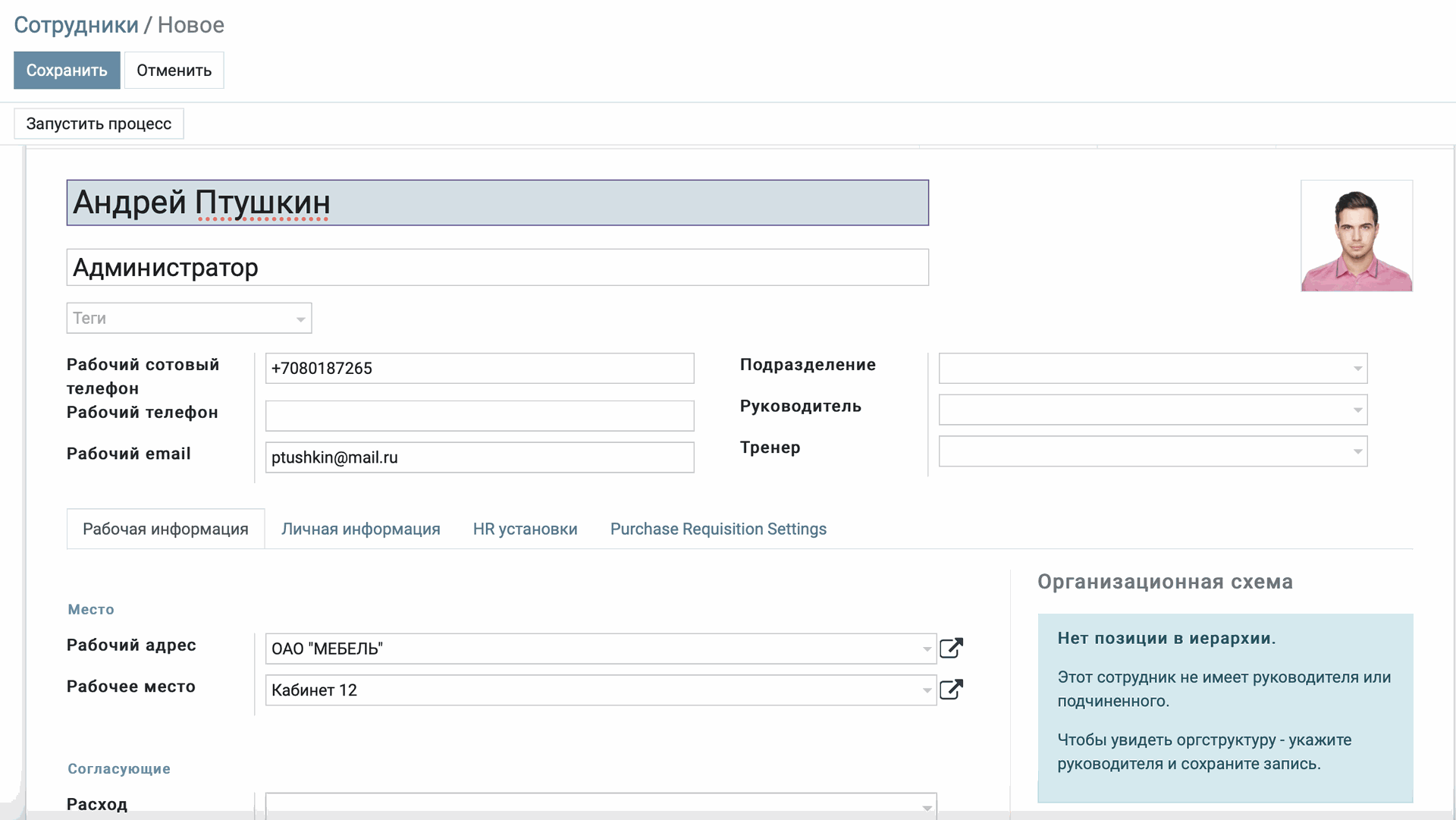 Легко дополняйте информацию в карточке сотрудника, для поддержания актуальной информации