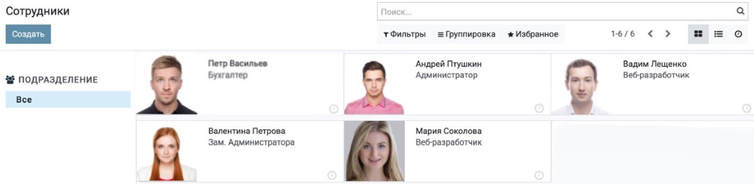 Просматривайте всю важную информацию по каждому отделу. Настройте видимость персональной информации только для сотрудников HR отдела или сделайте доступной для всех такую информацию, как справочник сотрудников.